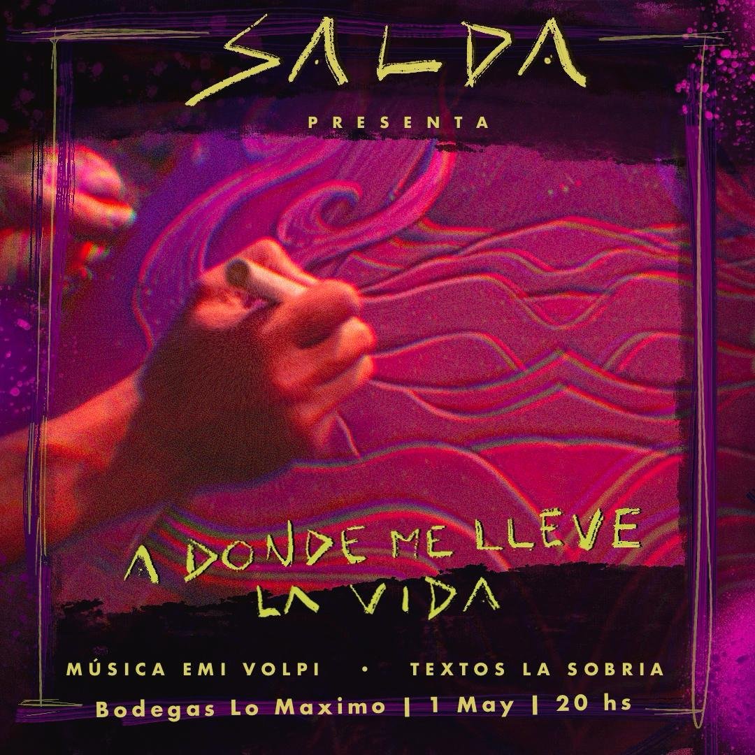 Salda es un artista y tatuador argentino que, desde Acebal, un pueblo cerca de Rosario, vino a Europa en busca de nuevas experiencias. Con su poder en la búsqueda de los tesoros abandonados de Madrid y con la ayuda de dos grandes amigos, Emiliano Volpi con su teclado y con los textos de la sobria, nace la exposición «A donde me lleve la vida». Con su magia, nos llevará a descubrir su mundo moradito